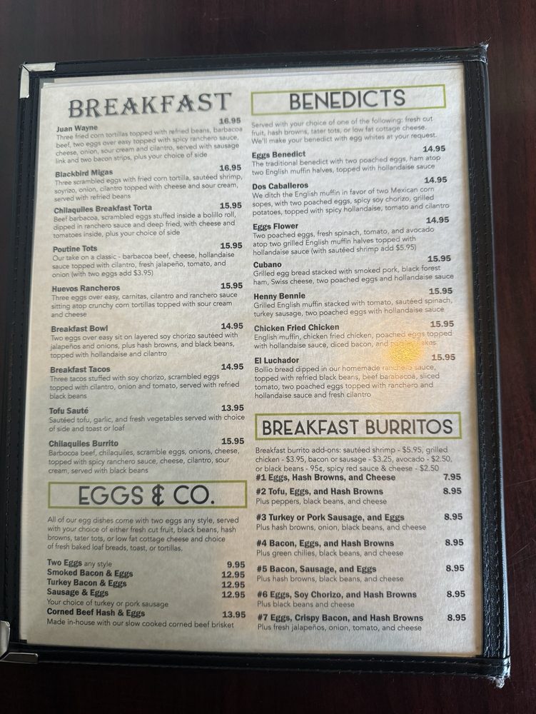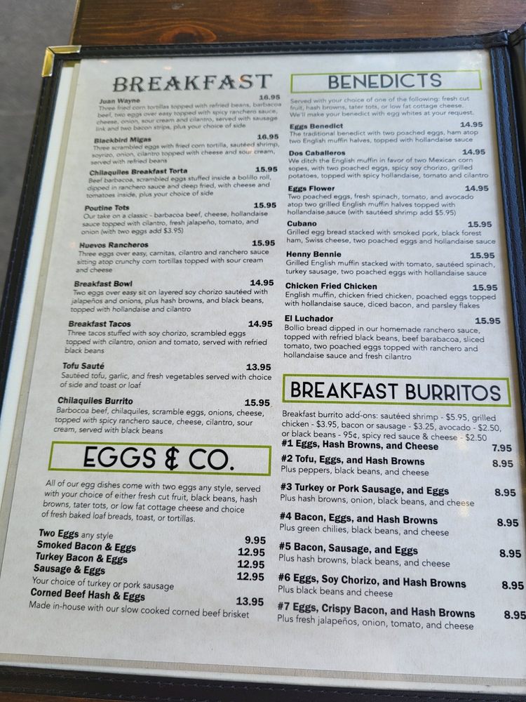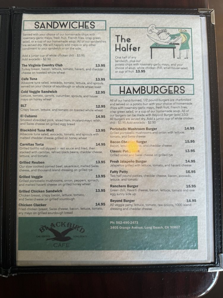 Introducing the menu at Blackbird Café, a charming New American café in Long Beach, CA. This Latinx and women-owned establishment offers a variety of options for every palate. From vegan and vegetarian choices to hearty breakfast classics, Blackbird Café provides a welcoming atmosphere with excellent service. Customers rave about the generous portions, reasonable prices, and attentive staff. The menu features delicious dishes like the Cobb salad, breakfast burritos, and Eggs Benedict. With options for takeout, reservations, and delivery, Blackbird Café is a must-visit spot for a good meal in a cozy setting. Don't miss out on their happy hour specials and the delectable beer and wine selections. Experience the local vibes and fantastic options at Blackbird Café for a memorable dining experience.
