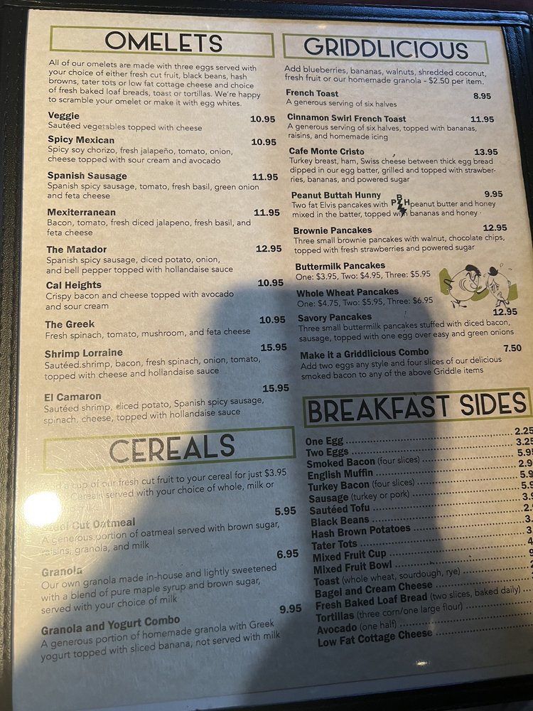 Spicy soyrizo, jalapeno,tomato onion Topped w/ cheese, sour cream & avocado Served with side and toast